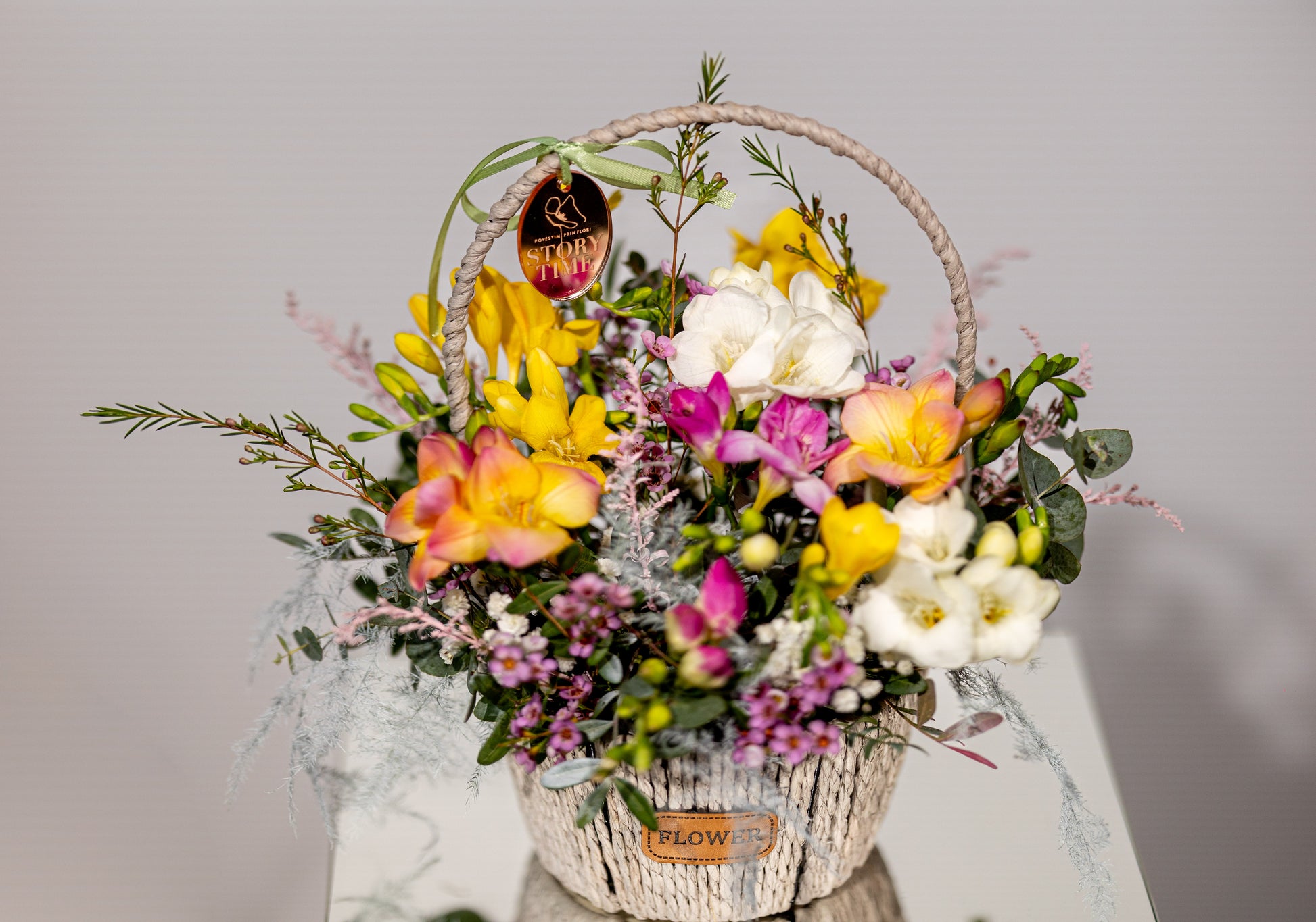 Un aranjament plin de prospețime și vitalitate, inspirat de frumusețea naturală a primăverii. Freziile multicolore, alături de accentele delicate de waxflower și solidago, oferă un mix echilibrat de culoare, parfum și energie pozitivă.