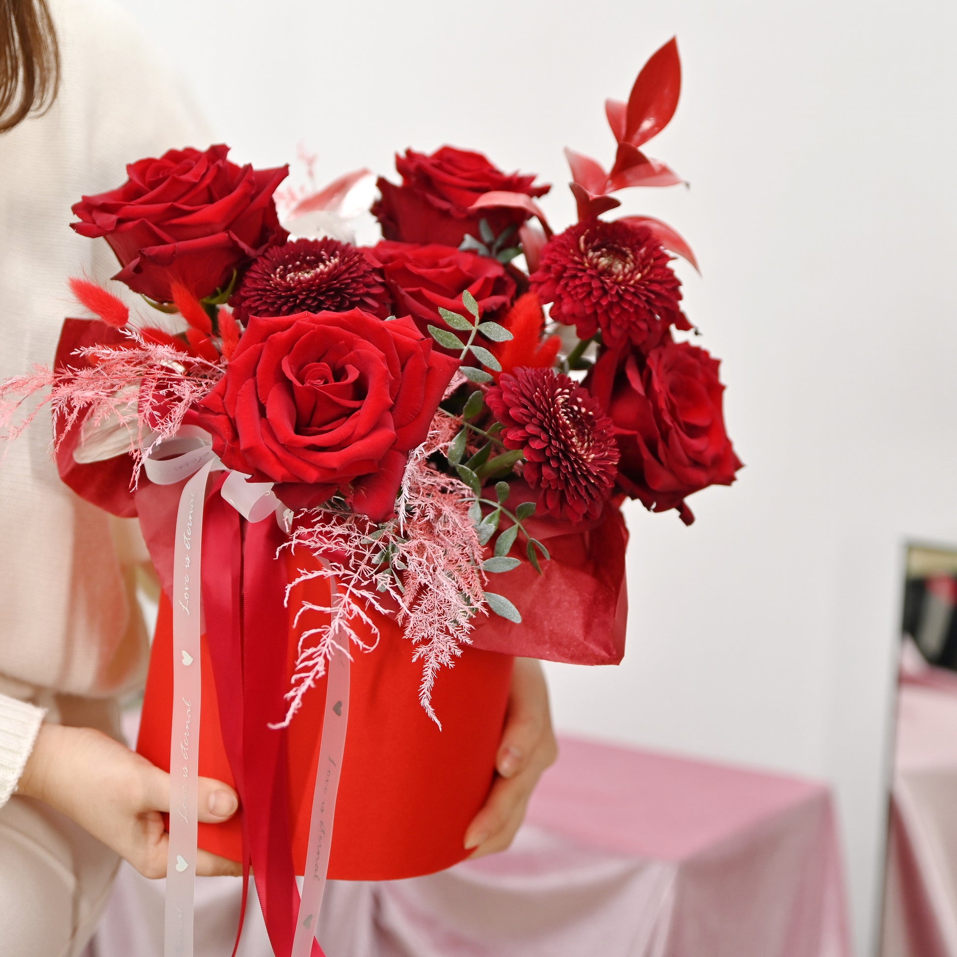 - Notă: Gradul de înflorire al florilor, culoarea coșului și nuanțele pot varia în funcție de stocul disponibil.