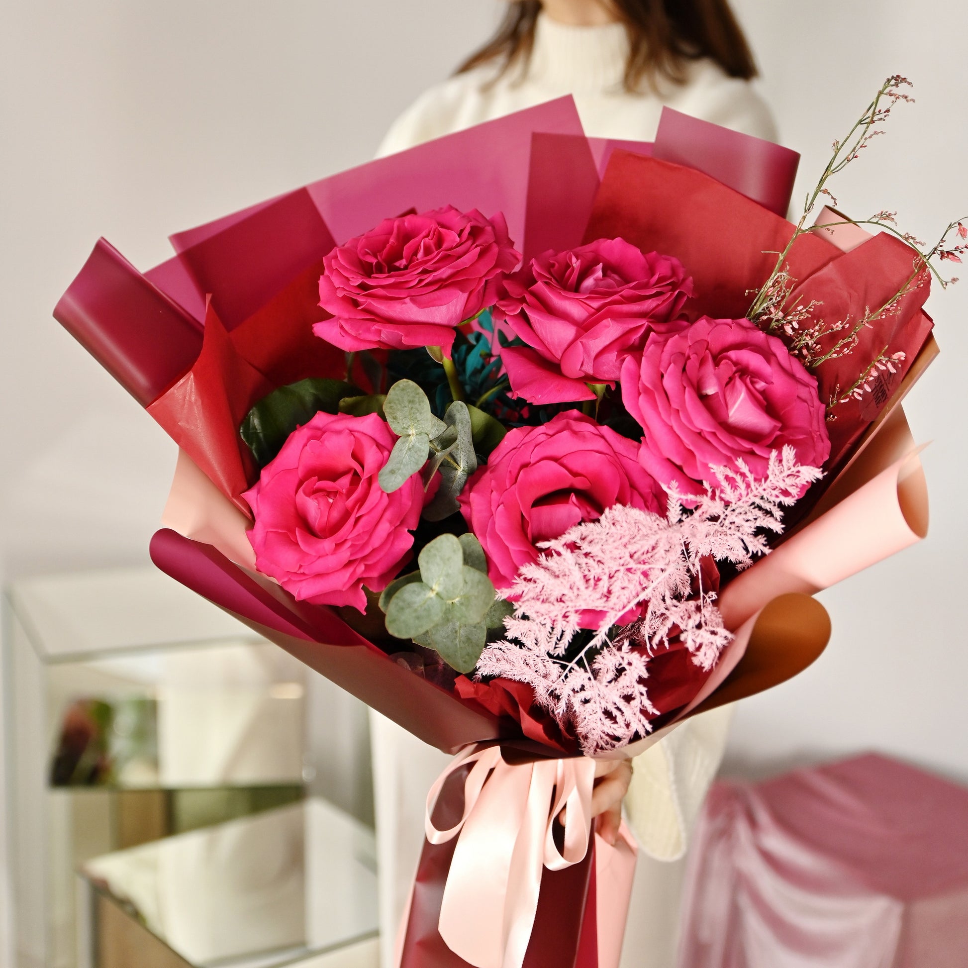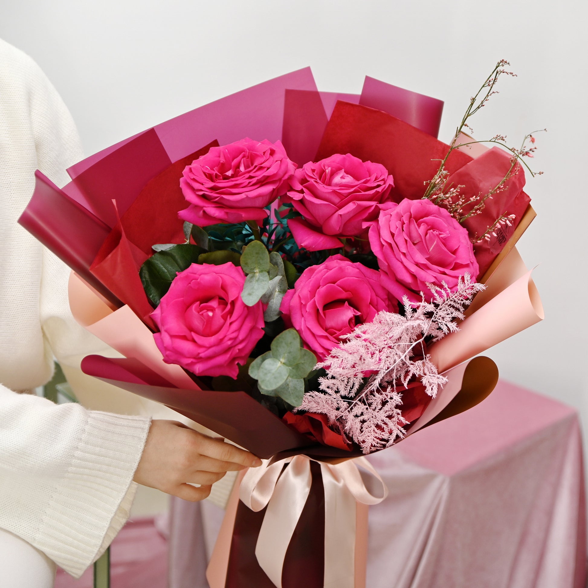 - 5 fire trandafiri cyclam, asparsgus